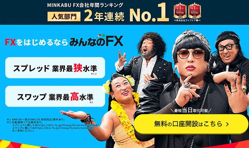 スプレッドは実質的な取引コストを指します。多くのFX会社は売買手数料を無料としていますが、コストを最小限に抑えて利益を出しやすくするためには、スプレッドが業界最狭水準の会社を選ぶのが鉄則です。